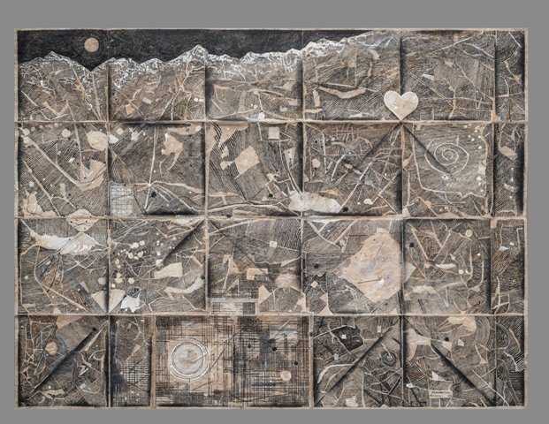 Medium : Pen & Ink, Poster Colour, Charcoal, Pencil, Nepali Handmade Paper pated on Cloth