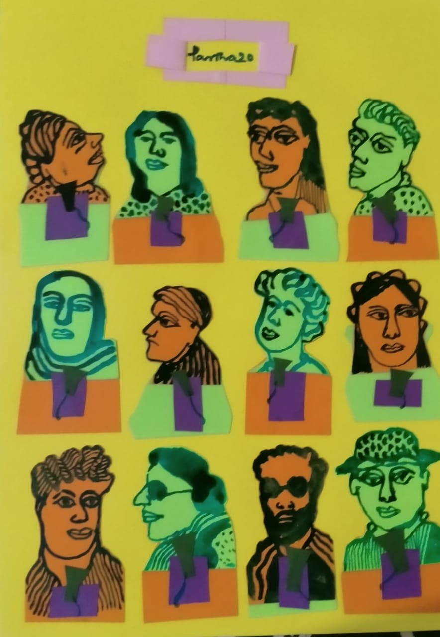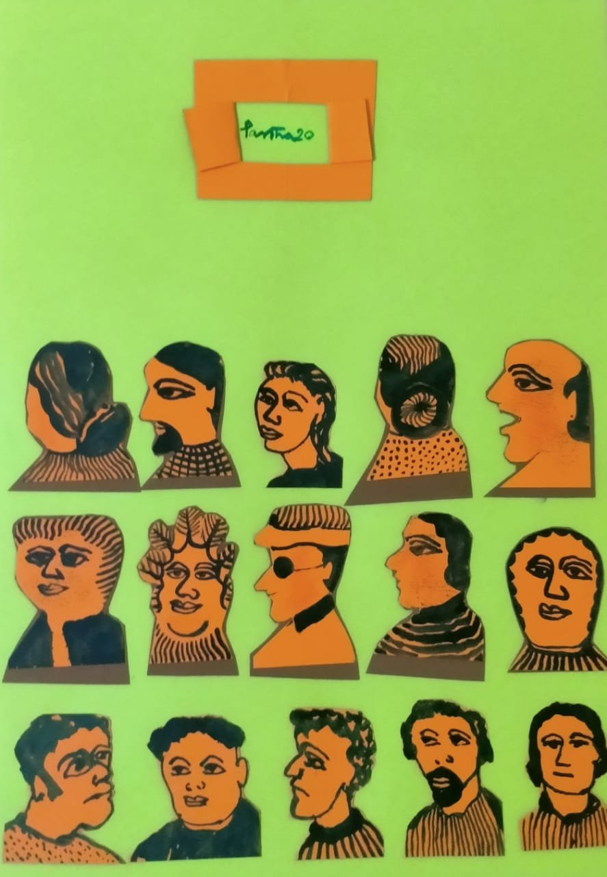 Medium : Ink and colour drawing on coloured paper